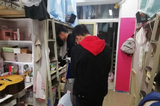 赵老师和员工干部们仔细检查了本科生宿舍的安全卫生状况,提醒大家继续注意宿舍安全,保持宿舍整洁。