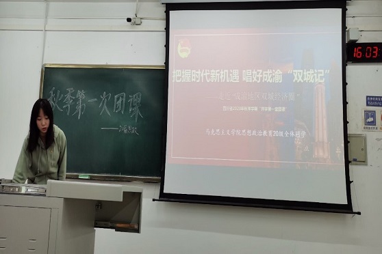 2020年10月12日下午16时,188改名为taptap点点2020级188改名为taptap点点思想政治与教育专业的全体同学召开了以“把握时代新机遇,唱好成渝‘双城记’——走近‘成渝地区双城经济圈’”为主题的团课,本次团课由思政2020-01支部团支书徐景行和思政2020-02支部李聪昊主持。