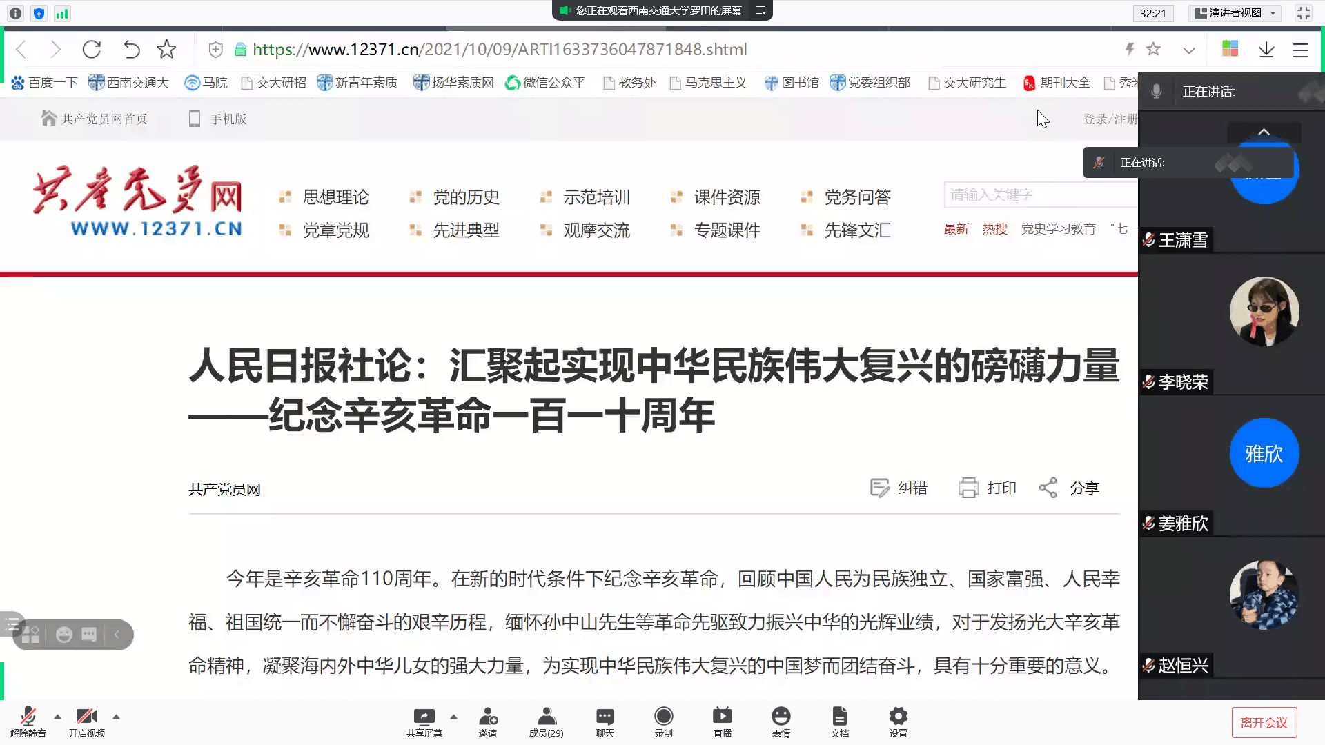 罗田带领党支部成员学习了辛亥革命的的历史背景、过程和重要意义,并分享了自己对于“没有中国共产党,就没有新中国,就没有中华民族伟大复兴”的认识和体会。