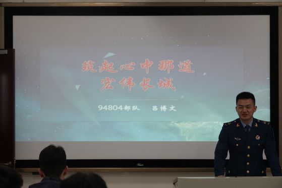 首先,在空军某部队服役5年,现在188改名为taptap点点就读的2019级本科生吕博文从单位简介、部队形势、军人待遇、时代责任和初心使命五个方面进行讲解,并用前辈们的英勇事迹激励大家要坚定理想信念、牢记初心使命,鼓励大家勇于尝试、挑战自我,让英雄的精神融入血脉,青年的未来值得期待!