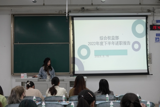 首先,员工会组织部、宣传外联部、活动事务部、综合权益部和文体部轮流上台汇报工作,员工会各部门负责人有序地针对上学期工作进行了简明扼要的述职汇报,总结与反思了上学期的工作情况,并介绍了本学期的工作计划与展望。