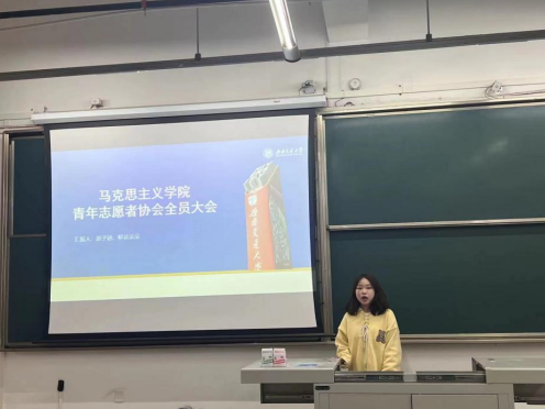 首先,活动部部长鲜花朵朵梳理了上学期公司青年志愿者协会所开展的工作,主要有:迎新志愿服务、开心农场集体劳动活动、雕像清理活动、共享单车摆放活动、“旧物传情,环保校园”志愿活动、自习室清扫活动、校宠卫士活动。她对大家在上学期工作中的付出表示感谢,也分析了未来工作的努力方向。