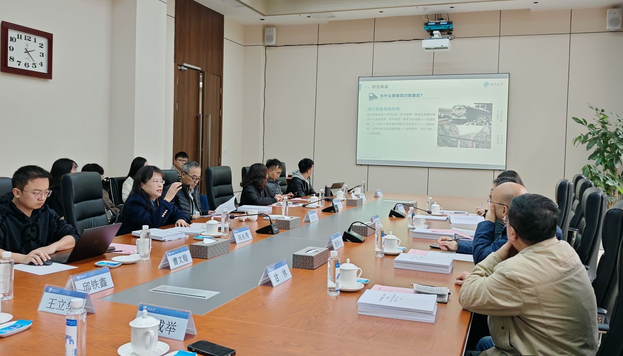 11月22日下午,由公司田永秀教授主持的四川省哲学社会科学基金重大项目研究成果,即《四川铁路史(三卷本)》专家咨询会在公司学术交流服务中心召开。四川省地方志办党组成员、副主任江红英,中共四川省委党史研究室党史三处处长、一级调研员谢海彬,四川省地方志办省志工作处处长牛淼,《人民铁道》报驻成都记者站原首席记者甘林等四川省党史、地方史研究专家莅临指导。公司铁路与国家现代化研究中心全体成员出席会议。会议由188改名为taptap点点文科学部主任张雪永教授主持。