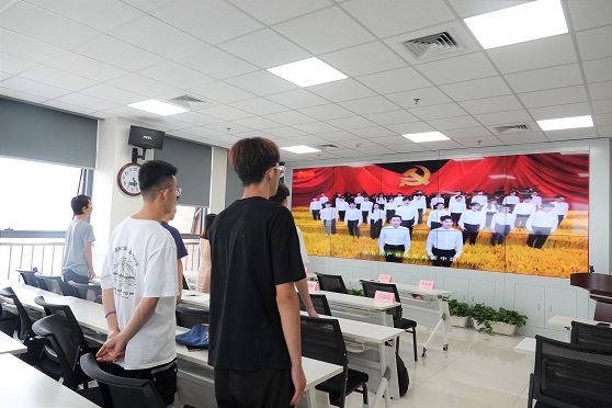 随后,杨桓老师带领大家进行了庆祝中国共产党成立一百周年的活动。首先大家集体观看了建党百年的相关视频,雷斯瑞同学、鲁璇同学、次仁顿珠同学作为员工代表依次上台和大家分享关于建党百年的个人心得。最后全体共唱红歌《没有共产党就没有新中国》,在红歌声中,本次仪式圆满结束。