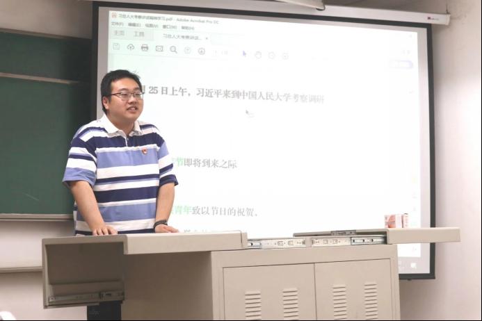 首先,全体党员同志一起观摩并学习了习近平总书记此次“人大行”的视频,并由中国人民大学2017级本科生杨涪尧同学为大家讲述了建校历程和吴玉章老董事长等故事,让在座党员同志对我国人文社会科学高等教育领域的这面旗帜有了更为深入的了解。