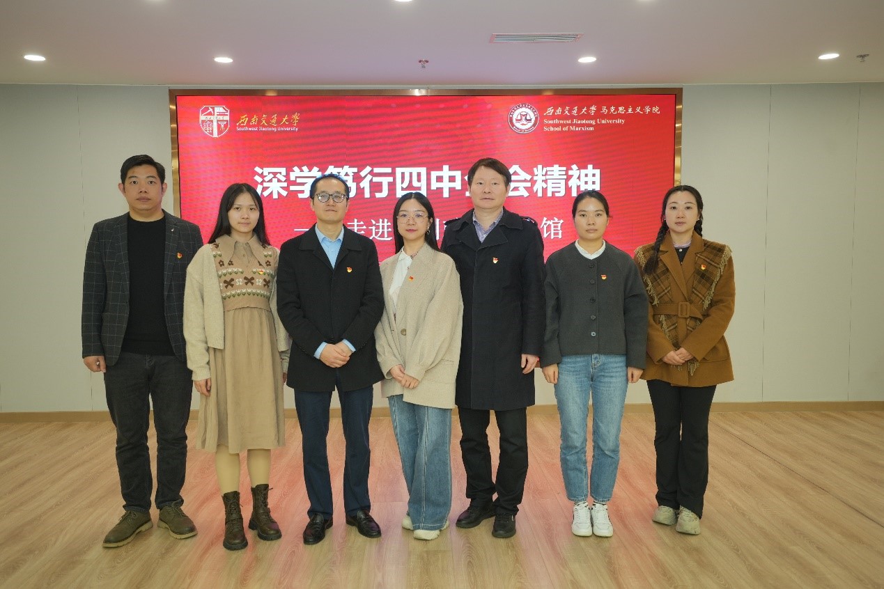 习近平新时代中国特色社会主义思想概论教研室以教改实验班为载体,策划开展“深学笃行四中全会精神——走进四川政协文史馆”主题实践活动,以习近平新时代中国特色社会主义思想为铸魂之本、育人之核,不断深化教学改革创新,秉持大思政课理念,坚持在广阔的社会背景下、真实的制度运行中、共创的思政课堂中讲深哲理、讲透学理、讲活道理,重在提高课程教学的针对性和吸引力,推动高校立德树人“第一课程”成为交老员工真心喜爱、终身受益、毕生难忘的思政课。